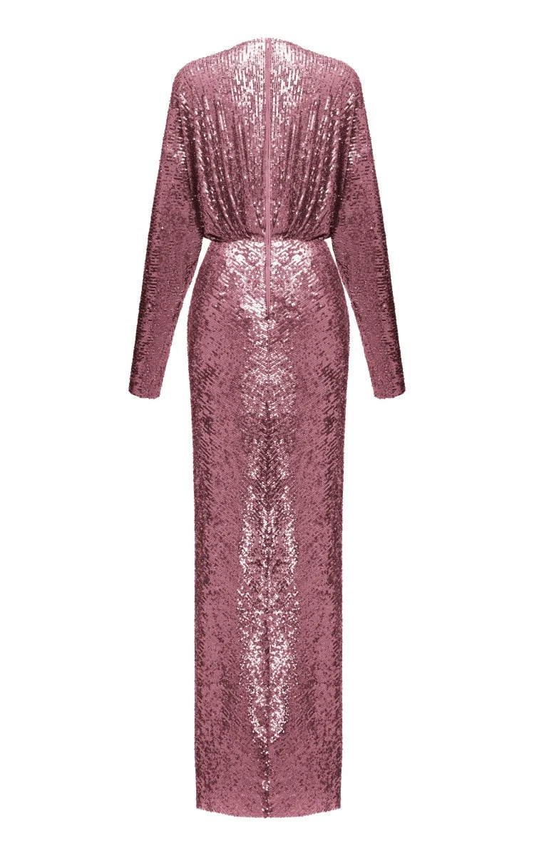 • Discreet draped floor-length dress with long sleeves, accent pleats and deep neckline. Elongates the silhouette, emphasizes the neck and gives a shining look. Suitable for mysterious girls who like to leave hints and clues.