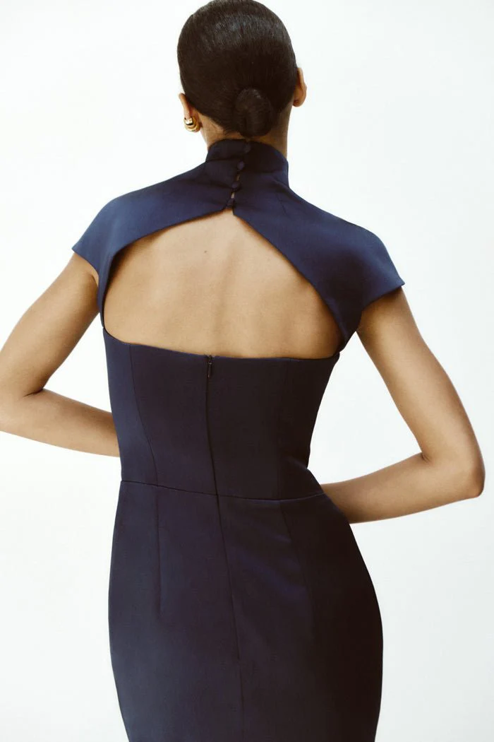 • The soft corset at the top of this dress beautifully accentuates the bust and waist, followed by the petite sleeves, inspired by the traditional Chinese qipao dress. Simultaneously, the dress features a side slit, adding a touch of allure while visually elongating the legs.
