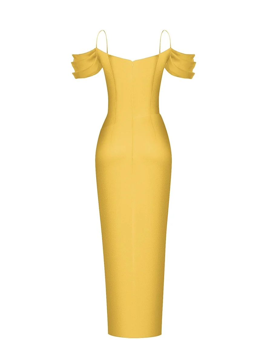 • Discover the flawless attire for making a remarkable impact at your upcoming event. The Satin Draped Off-the-Shoulders Long Midi Dress effortlessly fuses classic elegance with contemporary charm.