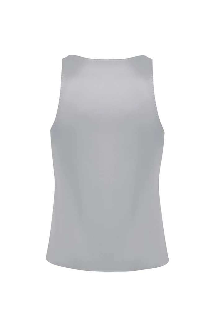 • A sleek silk top featuring an elegant deep neckline as its focal point. Minimalist lines and the soft sheen of the fabric lend it a distinctly feminine touch. The lightly fitted silhouette flatters the figure while ensuring comfort. Perfectly pairs with jackets from the new collection to create looks for special occasions.