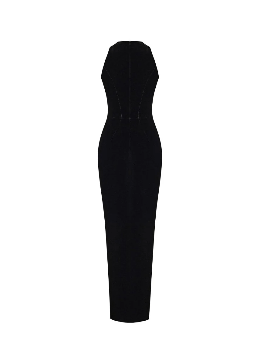 Velvet draped midi dress with a side slit