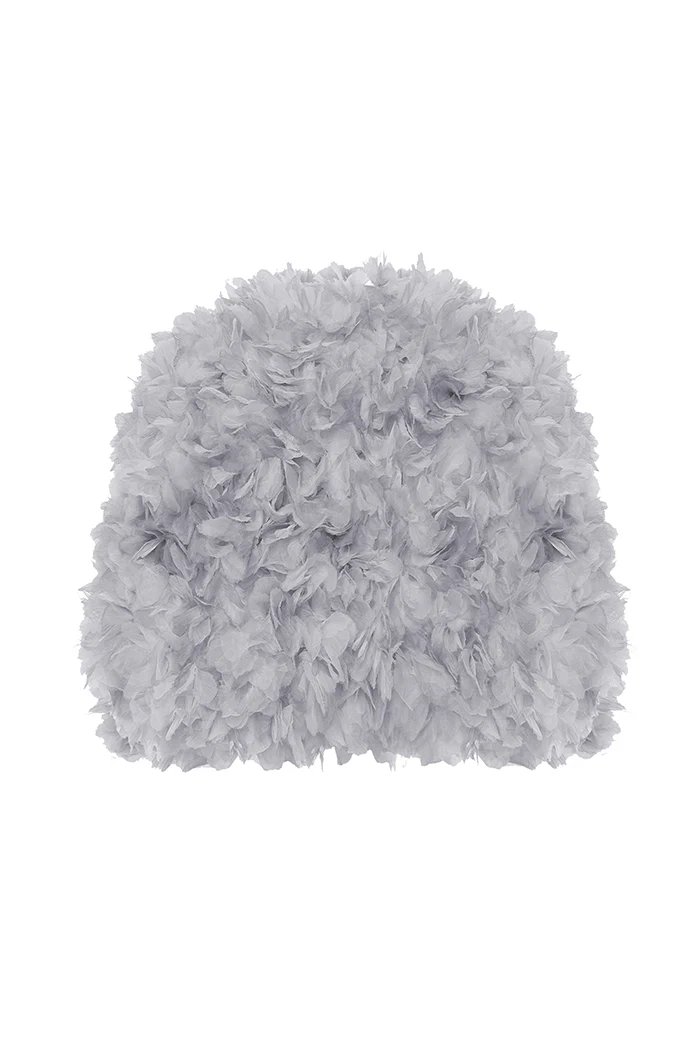• An elegant cape decorated with multi-layered floral embellishments creates a festive look. This piece pairs beautifully with a satin mini dress from the new collection.